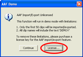 | A license key must be purchased to remove the limitations on the demo version on AAF plugin included with the Fairlight Dream-II software. Each license key will allow the software to be used with the Fairlight CC-1 or CC-2 hardware card installed on a single PC. |